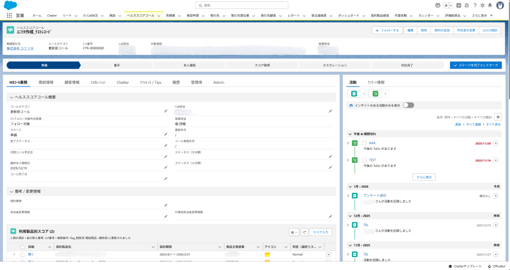 HSコール業務については、4000を超える契約数に対して複数回架電を行っており、日々10件以上の架電を繰り返し行っています。「更新する予定や予算の確保状況、サポートサイト活用の有無など、ヘルススコアを判断する複数項目を直接お客さまにヒアリングして、必要に応じて営業担当にエスカレーションする運用となっています」と松田氏。なお、担当営業へのエスカレーションに関しては、「Growwwing」はもちろん、Salesforceの商談画面からでも確認して社内コミュニケーションが完結できるようになっています。